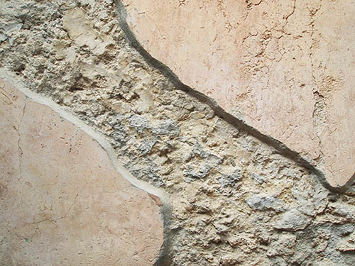 古代都市ポンペイの住居跡。水硬性石灰が着色され石造りの壁面を贅沢に現在まで覆い続けている。